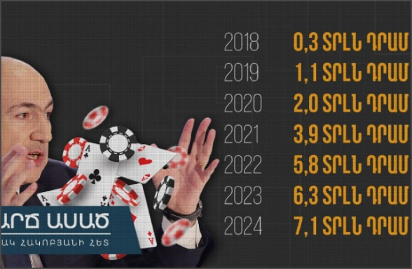 Վստահեցնում եմ, որ պետությունն ունի լծակներ իրավիճակը շտկելու համար, բայց չի անում․ որովհետև հա՛մ անբաշար են, որևէ բան անել, համ էլ դե ձեռք չի տալիս։ Հայաստանի խոշոր հարկատուների ցանկում շատ առաջատար տեղ գիտե՞ք ով է զբաղեցնում․ օնլայն կազինոն։ Մեր նման փոքր երկրում էնքան են կազինո խաղում, որ խոշոր հարկատուների համարյա տասնյակում է։ Դա ձեր փողերն են, ժողովուրդ։ Նիկոլը որ եկել էր իշխանության, 138 մլրդ դրամ էր խաղադրույքը։ Ու ի՞նչ էր ասում․ պետք է փակենք․ մարդիկ պարտքերի տակ են ընկնում։ Ասում էր փողոցով քայլում էի, կանայք պատուհաններից ցույց էին տալիս բուքմեյքերական գրասենյակները և գոռում էին՝ ինչքան հնարավոր է շուտ փակեք դրանք։ Որովհետև, ասում էին, աշխատավարձի օրը ամուսինները մտնում են էդտեղ, նոր են գալիս տուն։ Ասում էր՝ պատճառը հուսահատությունն է։ Մարդիկ էնքան հուսահատված են, որ իրենց գործերը լավ կլինի, որ իրենք ուզում են ինչ-որ մի հատ հրաշք տեղի ունենա և իրենք դրամագլուխ վաստակեն։ 2018 թվականին որ եկավ, խաղադրույքները, կրկնում եմ, 138 մլրդ դրամ էին ու ասում էր սաղ ազգը ղումարբազ ա դարձել աղքատության պատճառով։ Նախորդ տարի՝ 2024 թվականին, գիտե՞ք որքան խաղադրույք է եղել մեր երկրում․ 7 տրիլիոն 130 մլրդ դրամ։ 7 տրիլիոն։ Մի երկրում, որտեղ բնակչության կեսը աղքատ է, 18 մլրդ դոլար մեկ տարում խաղադրույք են արել։ Էնքան մեծ է հուսահատությունը, որ սաղովի քայլերն ուղղում են կասինո։ 2018-ից սկսած՝ աճել են, 2021-ից սկսած՝ շատ կտրուկ։