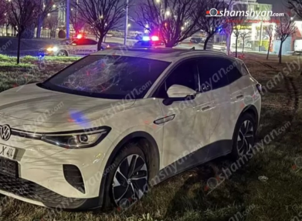 Երևանում «Volkswagen ID4»-ը բախվել է բազալտե եզրաքարերին, կոտրել ու վնասել ծառեր, այնուհետև հայտնվել կանաչ գոտում