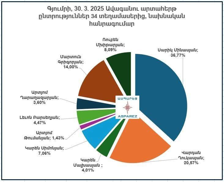 Գյումրու ՏԻՄ ընտրությունների նախնական պատկերը՝ 34 ընտրատեղամասերից։