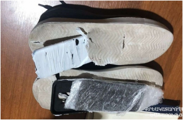 Խուզարկության արդյունքում պարզվել է, որ Վ․Խ․-ի հագին եղած կոշիկների ներբանների մեջ թաքցված է 2 բջջային հեռախոս։