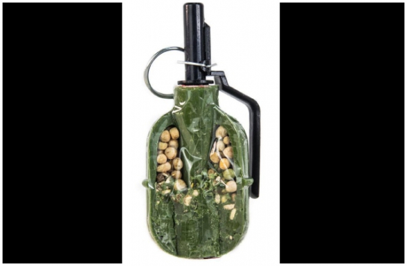 Առգրաված բոլոր զենքերը օրինական են։ Նկարներում պատկերված առարկաների մեծ մասը, այդ թվում նռնականման առարկան նախատեսված է Սթրայքբոլ խաղի համար։ Նռնականման առարկայի ներսում պահվել են Սթրայքբոլ խաղի համար նախատեսված սիսեռի հատիկներ։