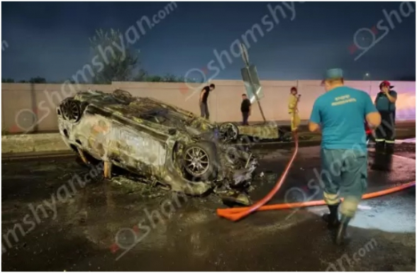 Հրշեջները մարել են ավտոմեքենայում առաջացած կրակը, սակայն այն ամբողջությամբ վերածվել է մոխրակույտի: