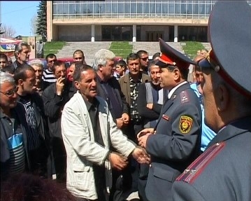 Սայաթ-Նովա փողոցի վրա գտնվող՝ Վ. Աճեմյանի անվան դրամատիկական թատրոնի դիմաց նրանց հետ հանդիպման եկավ մարզային ոստիկանության պետի տեղակալ Աշոտ Գեորգինյանը և Շիրակի փոխմարզպետ Միքայել Վարդանյանը: