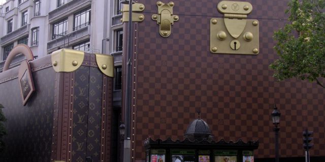 Խանութ–ճամպրուկում։ Իր 150-ամյակի կապակցությամբ «Louis Vuitton»–ը որոշել է թարմացնել իր գլխավոր խանութը՝ Փարիզում։ Ահռելի ճամպրուկները տեղադրվել են խանութի դիմաց վերանորոգման շրջանում։