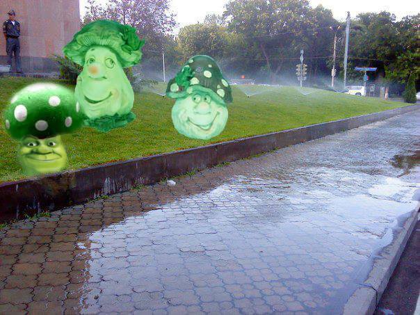 Առաջին օրը բողոքի գործողության մասնակիցները նստել էին քաղաքապետարանի շենքին հարակից սիզամարգին։ Սակայն քաղաքապետարանից միացրեցին ոռոգման համակարգը, և ցուցարարները ստիպված եղան տեղափոխվել։ Այդ օրվանից, սակայն, ոռոգման համակարգը չի անջատվել, և այն բառի բուն իմաստով արդեն հեղեղում է քաղաքապետարանի շենքի հարակից մայթը և տարածքը։ Քաղաքապետարանի նմանօրինակ գործելաոճը ֆեյսբուքյան օգտատերերի շրջանում հումորի և ծիծաղի առարկա է դարձել։ Ներկայացնում ենք նրանց գրառումների մի չնչին մասը։