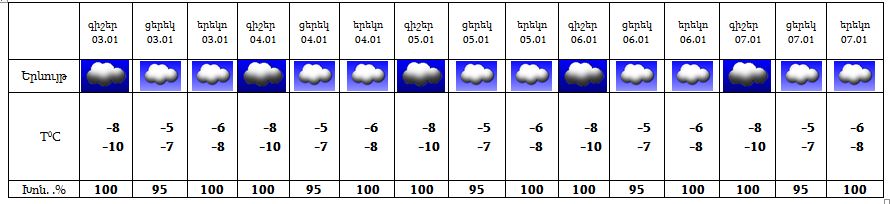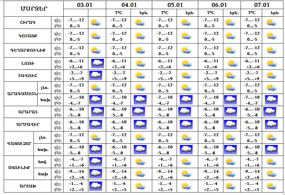 Հունվարի 3-7-ին սպասվում է առանց տեղումների եղանակ
