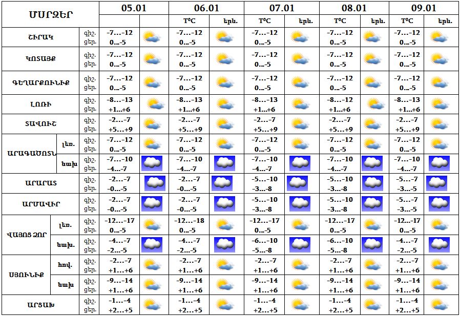 Հունվարի 5-9-ը ժամանակ առ ժամանակ կդիտվի մառախուղ