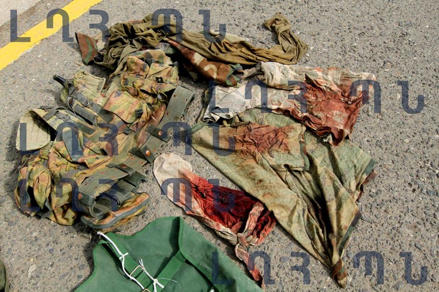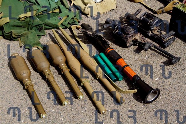 Ադրբեջանական զինուժից առգրավված զինատեսակներն են՝ 1 ձեռքի հակատանկային նռնականետ, 2 ձեռքի նռնականետ /РГ-7 АТР/, 3 թերմոբարիկ նռնակ, 3 պահեստատուփի պայուսակ, 3 վառոդային լիցք, 2 ձեռքի նռնականետ /РГ-6/, 12 հատ БМГ-К տեսակի նռնակ РГ-6 ձեռքի նռնականետի համար, 2 ինքնաձիգ /АКМ, 7.62 мм/, 20 ինքնաձիգի պահունակ, 100 և 200 փամփուշտ տեղավորող գնդացրային 1-ական պահունակ, 2 կապի միջոց /Тадиран ПНР-500/, 2 հակատանկային ական /ТМ-57/, 8 մեկանգամյա նռնականետի կոնտեյներ, 2 հակատանկային ական /МОН-50/, 2 ձայնալուսային նռնակ, 1 տափաշիշ, 1 հարձակողական նռնակ, 4 նռնակ РГД-5 տեսակի, 1 ջերմացուցային նշանոց՝ իսրայելական արտադրության, 1 ձեռնաշղթա, 2 լրակազմի համազգեստ, 1 ոտնակ, 1 հասարակ ջրի շիշ՝ փաթեթավորված մեկուսաժապավենով, 1 դաշտային պայմաններում վիրավոր դուրս հանելու պատգարակ: