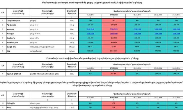 ՀՀ ՏՄՊՊՀ նախագահ Արտակ Շաբոյանը ՀՀ վարչապետ Հովիկ Աբրահամյանին է ներկայացրել խանութներում մի շարք ապրանքատեսակների իրացման գների եւ Երեւան քաղաքում գործող մի շարք բենզալցակայաններում բենզինի եւ ավտոմեքենաների լիցքավորման բնական սեղմված գազի իրացման գների դիտանցման մասին տեղեկանք։