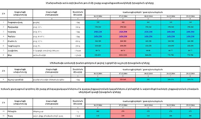 ՀՀ ՏՄՊՊՀ նախագահ Արտակ Շաբոյանը ՀՀ վարչապետ Հովիկ Աբրահամյանին է ներկայացրել խանութներում մի շարք ապրանքատեսակների իրացման գների եւ Երեւան քաղաքում գործող մի շարք բենզալցակայաններում բենզինի եւ ավտոմեքենաների լիցքավորման բնական սեղմված գազի իրացման գների դիտանցման մասին տեղեկանք։