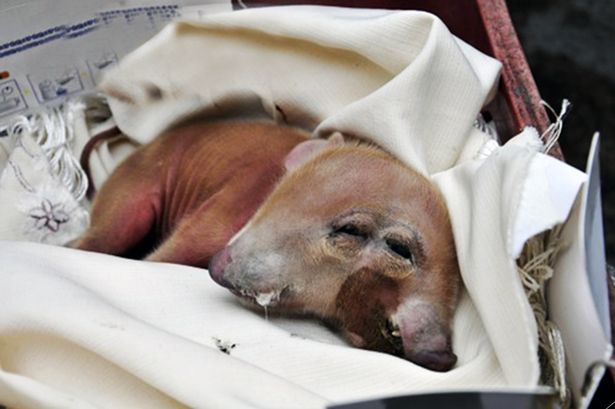Ըստ մասնագետների՝ դա գենետիկական հազվագյուտ անոմալիա է, որը հանդիպում է 100 հազ նորածին խոզուկներից մեկի դեպքում։ Ձագուկը կշռում է 1.5 կգ, իսկ երկարությունը 30 սմ է։