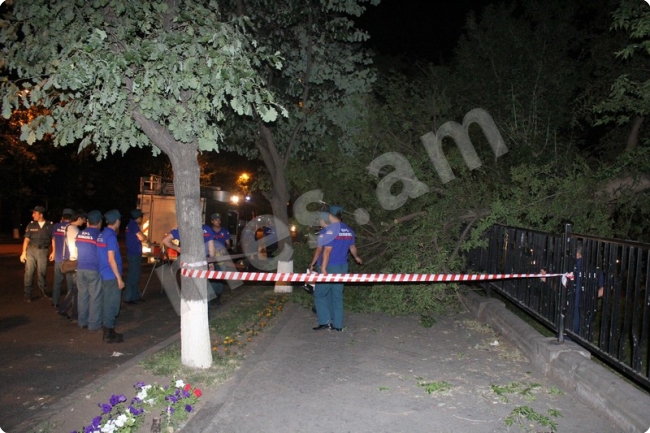 Հունիսի 8-ին՝ ժամը 00.06-ին, ՏԿԱԻՆ–ում ահազանգ է ստացվել, որ Երևանի Բաղրամյան պողոտայի թիվ 26 հասցեի մոտակայքում ծառի ճյուղը քամուց պոկվել և ընկել է մայթեզրին. անհրաժեշտ է փրկարարների օգնությունը: Դեպքի վայր է մեկնել մեկ մարտական հաշվարկ. ՀՆՓԱԻԿ փրկարարական ջոկատը և ՃԿԱԿ օպերատիվ խումբը: