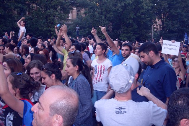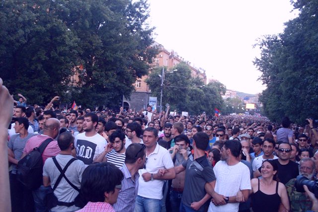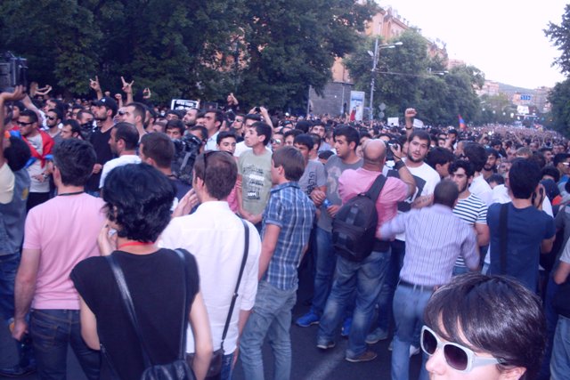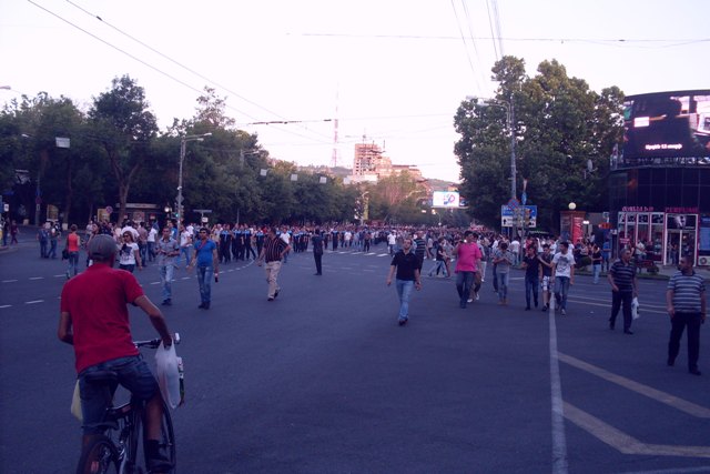 Ինչպես հայտնել էինք, այսօր Ազատության հրապարակում կրկին բողոքի ցույց էր իրականացվում, որի ժամանակ մասնակիցները որոշել են երթով շարժվել Բաղրամյան 26։ Ներկայացնում ենք այդ երթից «7օր»–ի ֆոտոռեպորտաժը։