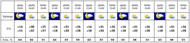 Սեպտեմբերի 20-24-ին սպասվում է առավելապես առանց տեղումների եղանակ: