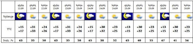 Օդի ջերմաստիճանը 24-ի ցերեկը և 25-ի գիշերը կնվազի 1-2 աստիճանով: