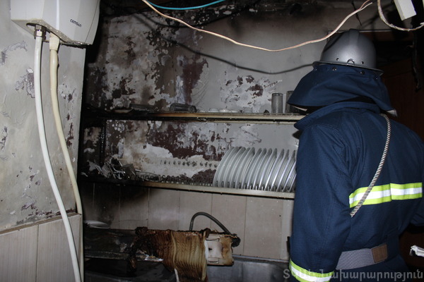 Հրդեհը մեկուսացվել է ժամը 21.27-ին, մարվել՝ 21.31-ին: Այրվել է խոհանոցի առաստաղից մոտ 4 քմ հատված, ջրատաքացուցիչի լարերը (2 գմ), ջերմահարվել՝ ջրատաքացուցիչը և գազի կաթսան: