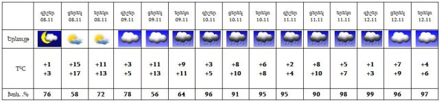 Նոյեմբերի 7-8-ը սպասվում է առանց տեղումների եղանակ, 9-12-ը ժամանակ առ ժամանակ հնարավոր է անձրև: