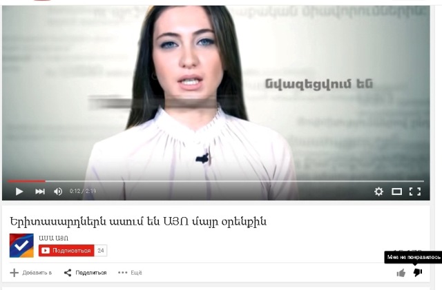 Մոտ երկու շաբաթ առաջ «Այո»-ի ճակատը «Youtube»-ում բացեց «Ասա՛ այո՛» պաշտոնական էջը, որն իր վրա ուշադրություն գրավեց ոչ թե քարոզող տեսանյութերի պատճառով, այլ սակավաթիվ հետևորդների ու «like»-երի, և չափից դուրս շատ «dislike»-ի: