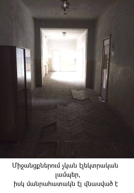 Հայտնենք նաեւ, որ դեռեւս 2014 թվականին Կրթության եւ գիտության նախարարն Օմբուդսմենին տեղեկացրել էր, որ բյուջեի պահուստային ֆոնդից գումար է հատկացվել շենքի հիմնանորոգման համար՝ նախահաշվարկներ կազմելու նպատակով: Սակայն կարող ենք միանշանակ փաստել, որ հաստատությունում առկա վիճակը շարունակում է մտահոգիչ եւ չլուծված մնալ: Միակ առաջընթացը, որ գրանցվել է մեկ տարվա ընթացքում այն է, որ այս տարի չի հայտնաբերվել ժամկետանց դեղորայք, ինչպես նաեւ մասամբ բարելավվել են դպրոցի խոհանոցային պայմանները: