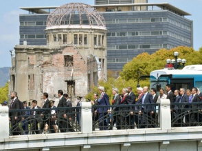 Он возложил цветы на место памятника жертвам атомной бомбардировки. При этом с ним так же приняли участие в символической церемонии его коллеги из Великобритании и Франции.