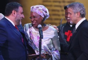 Газета The Independent пишет, что Клуни воздал дань памяти более 1,5 млн армян убитых в 1915 году, вручив награду в 1 млн долларов правозащитнице Маргерит Баранкитс из Бурунди, которая в годы гражданской войны предоставила убежище тысячам беженцев. Газета добавляет также, что резня армян, осуществленная 24 апреля 1915 года, считается первой резней 20 века». Газета отмечает, что до вручения награды Клуни напомнил зрителям слова Гитлера: «Кто Помнит армян?». «Весь мир!», - ответил Джордж Клуни.