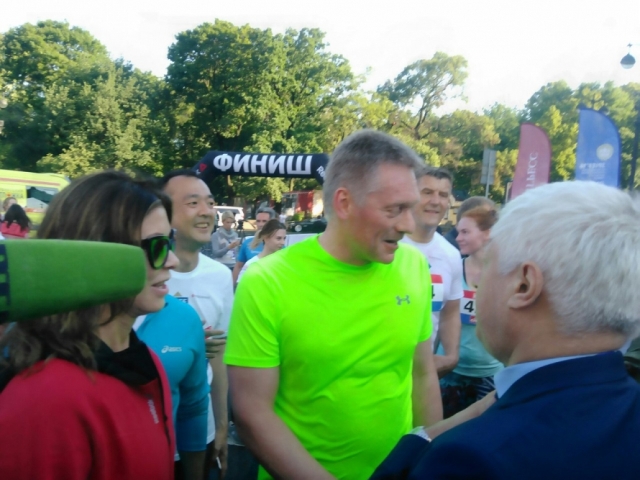 Песков и Захарова приняли участие в утреннем забеге по Петербургу (фото)