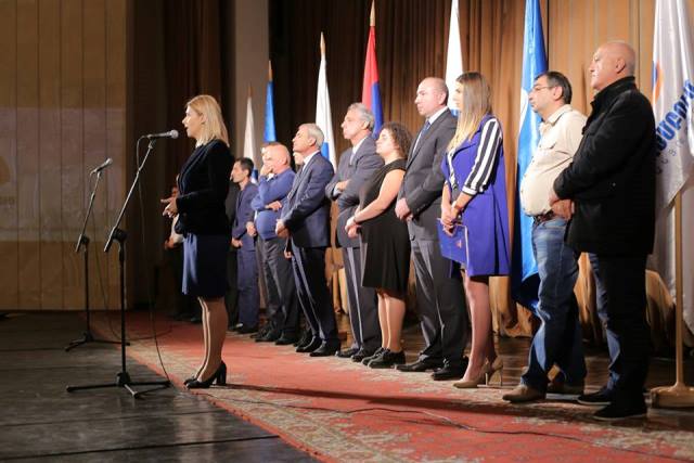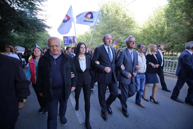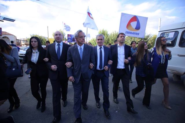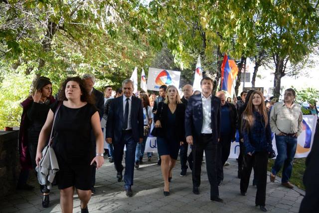 Перед гюмрийцами выступили председатель партии Вардан Осканян, первый номер пропорционального списка партии на выборах Совета старейшин города Ованнес Асоян, координатор совета партии Андраник Теванян, депутаты НС и вице-председатели партии Элинар Варданян и Степан Маргарян, члены правления партии – 3-й омбудсмен Армении Карен Андреасян и командир легендарного отряда «Арабо» Манвел Егиазарян.