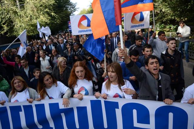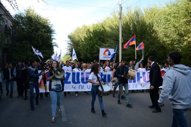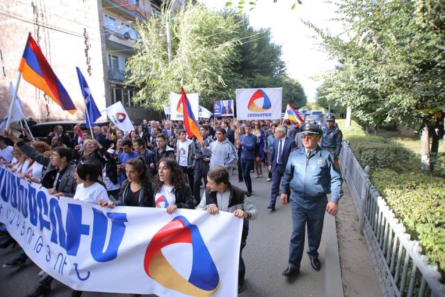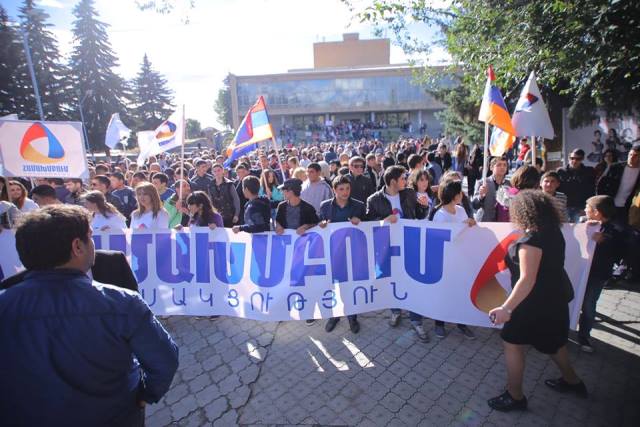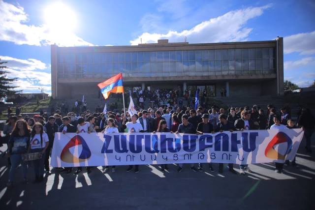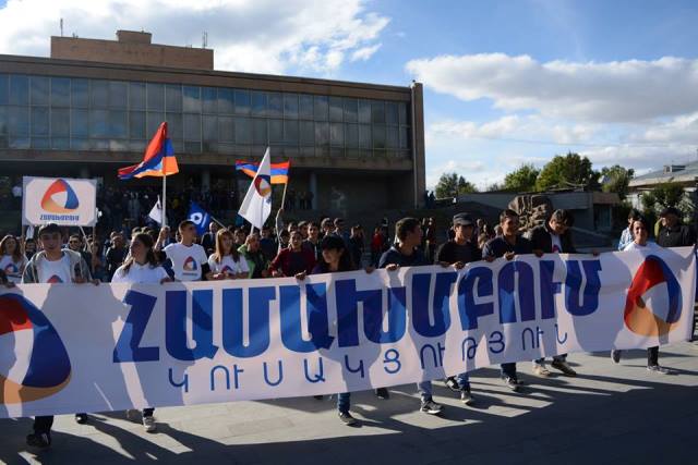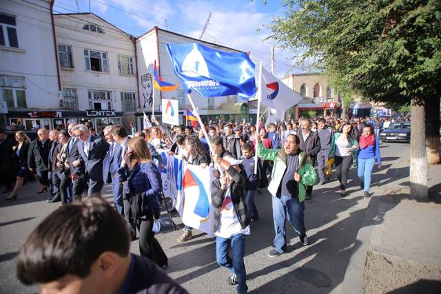 За общественным собранием партии последовало спонтанное шествие по центральным улицам Гюмри.