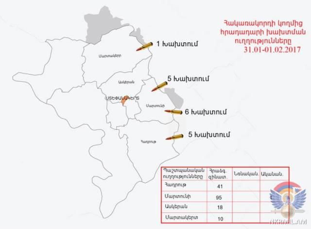 В направлении армянских позиций было произведено около 165 выстрелов из стрелкового оружия различного калибра.
