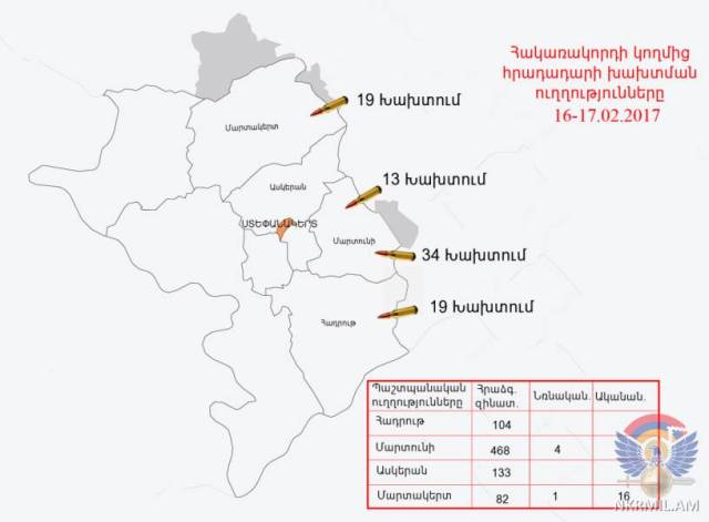 16-го февраля и в ночь на 17 февраля на карабахско-азербайджанской линии соприкосновения войск зафиксирован рост нарушений противником режима прекращения огня, сообщает пресс-служба Минобороны НКР.