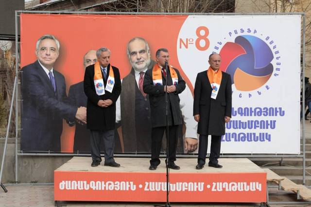 Генерал-полковник Сейран Оганян, вице-председатель партии «Наследие» Армен Мартиросян и председатель партии «Консолидация» Вардан Осканян представили предвыборную программу альянса, коснулись сложившейся в стране ситуации и необходимости смены власти для выхода из нее.