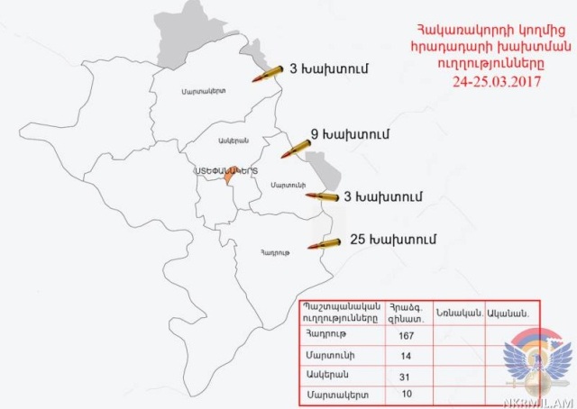 Накануне и в ночь на 25 марта на арцахско-азербайджанской линии соприкосновения войск противник нарушил режим прекращения огня 40 раз, сообщает пресс-служба Минобороны Республики Арцах.