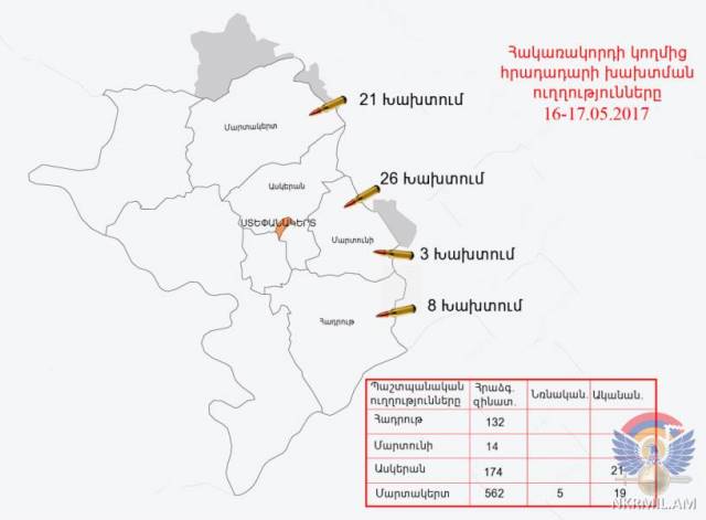 Накануне и в ночь на 17 мая на арцахско-азербайджанской линии соприкосновения войск противник нарушил режим прекращения огня около 60 раз, сообщает пресс-служба Минобороны Республики Арцах.