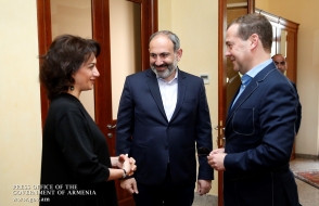 Премьер-министр Никол Пашинян в правительственном особняке принял председателя правительства Российской Федерации Дмитрия Медведеваа, который прибыл в Армению с рабочим визитом для участия в заседании Евразийского межправительственного совета.