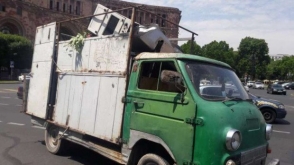 Отметим, что протестующие припарковали напротив здания Правительства Армении 8 грузовиков с металлоломом.