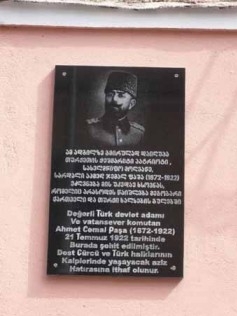 Текст доски на грузинском и турецком языках гласил: «21 июля 1922 года здесь героически погиб истинный патриот Турции, государственный деятель и военачальник Ахмед Джемал паша. Эта доска посвящена его вечной памяти, которая никогда не сотрется из сердец дружественных грузинского и турецкого народов».