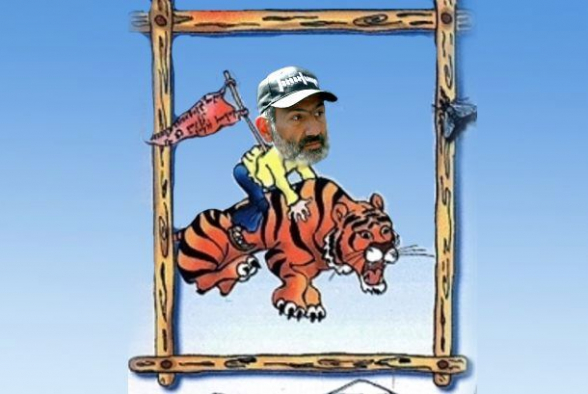 1․ повлиять на погосную часть общества, породив у них подсознательное отождествление Пашиняна с архетипным героем погосов Храбрым Назаром: последний случайно упал на спину зверя и прыгал на ней, производя со стороны впечатление того, что ему удалось духовито оседлать тигра,