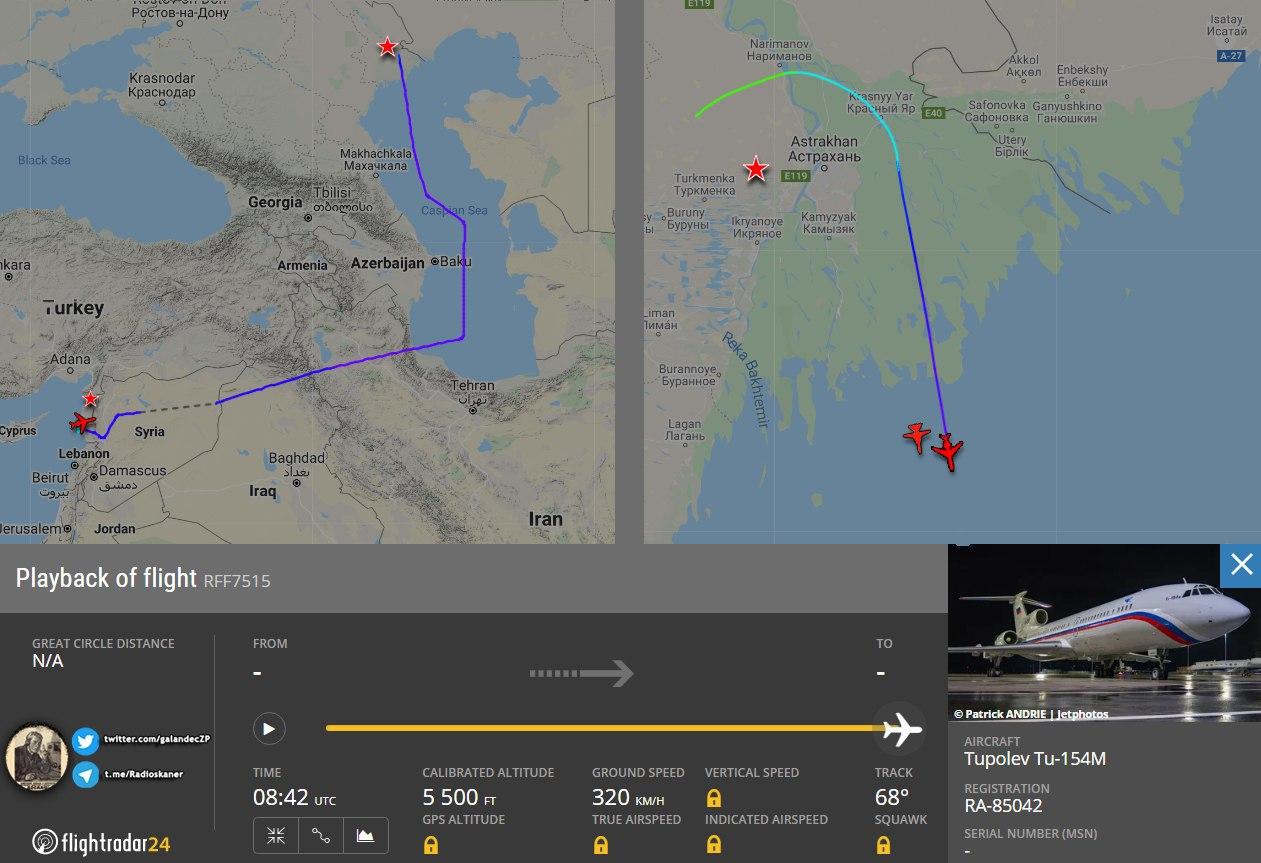 По утверждению компетентных источников, российские военные запросили у Турции добро на вхождение в ее воздушное пространство для следования на авиабазу Хмеймим. Анкара неожиданно отказала в этом, в связи с чем самолётам пришлось поменять маршрут, выполняя перелёт через Каспийское море, территорию Ирана и Ирака.