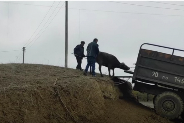 Житель Новой Мараги дедушка Вагиф увозит с собой также домашнюю скотину