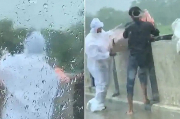 В Индии очевидцы сняли, как двое мужчин пытаются выбросить в реку тело умершего от COVID-19