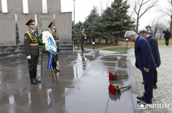 Имангали Тасмагамбетов возложил венок к мемориалу воинам, погибшим в Арцахских войнах.