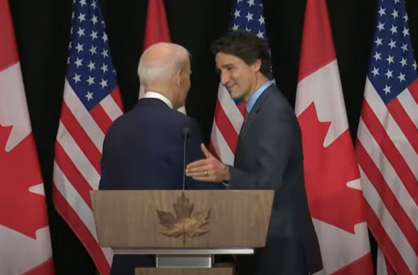 Президент США Джо Байден не сразу смог найти выход со сцены после совместной пресс-конференции с премьер-министром Канады Джастином Трюдо. Мероприятие транслировал телеканал «CTV News».