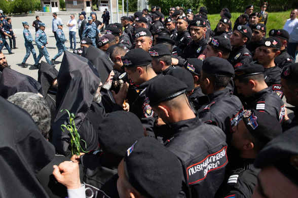 Эти 10 или «7 с половиной» иуд не молятся во имя Отца и Сына, а действуют во имя Никола и «Бентли». Именно поэтому, с опущенными головами, с охраной, словно картошку, их загрузили в микроавтобус, привезли на место, а затем таким же образом увезли обратно.