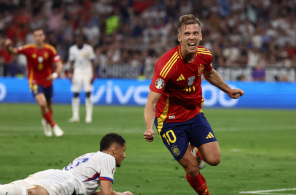 Как сообщает «Арменпресс», в начале матча, прошедшего в Мюнхене, обе команды действовали довольно активно. Франции удалось первой открыть счет матча. Точным ударом головой отличился Коло Муани. На 21-ой минуте Испания сравняла счет. Гол дальним ударом забил Ламин Ямаль. Он стал самым молодым автором гола в истории турнира, забившим гол в 16 лет. Спустя 4 минуты Жюль Кунде забил автогол в ворота Франции.