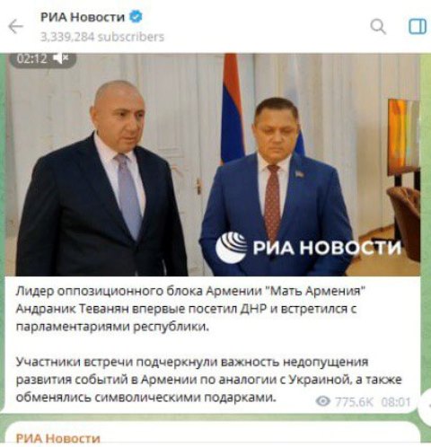 Словом, Донбасское «турне» было весьма плодотворным и полезным для Армении. Мы делаем всё, чтобы восстановить то, что испортили действующие в РА власти, так как это касается безопасности нашей страны и продиктовано интересами Армении.