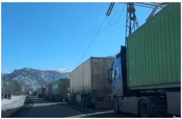 Из-за гололеда грузовики не могут проехать в Сюник (видео)