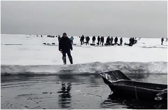 200 рыбаков застряли на отколовшейся льдине в Охотском море (видео)