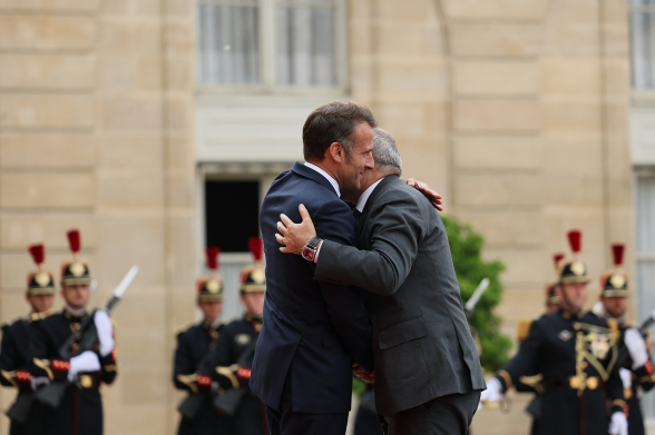 Президент Франции Эммануэль Макрон обнимает Никола Пашиняна, вновь даря Армении «поцелуй Иуды».