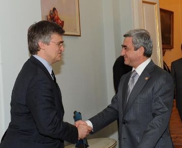 16 мая Президент НКР Бако Саакян принял участников футбольного турнира между журналистами стран СНГ и Балтии, проходящего в Степанакерте.