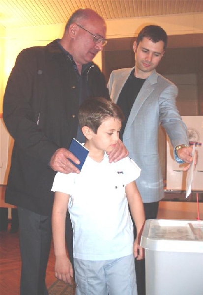 Хозяин «Гранд Холдинга» Грант Варданян голосовал на участке 10/28 вместе с семьей - женой, двумя детьми и внучкой.